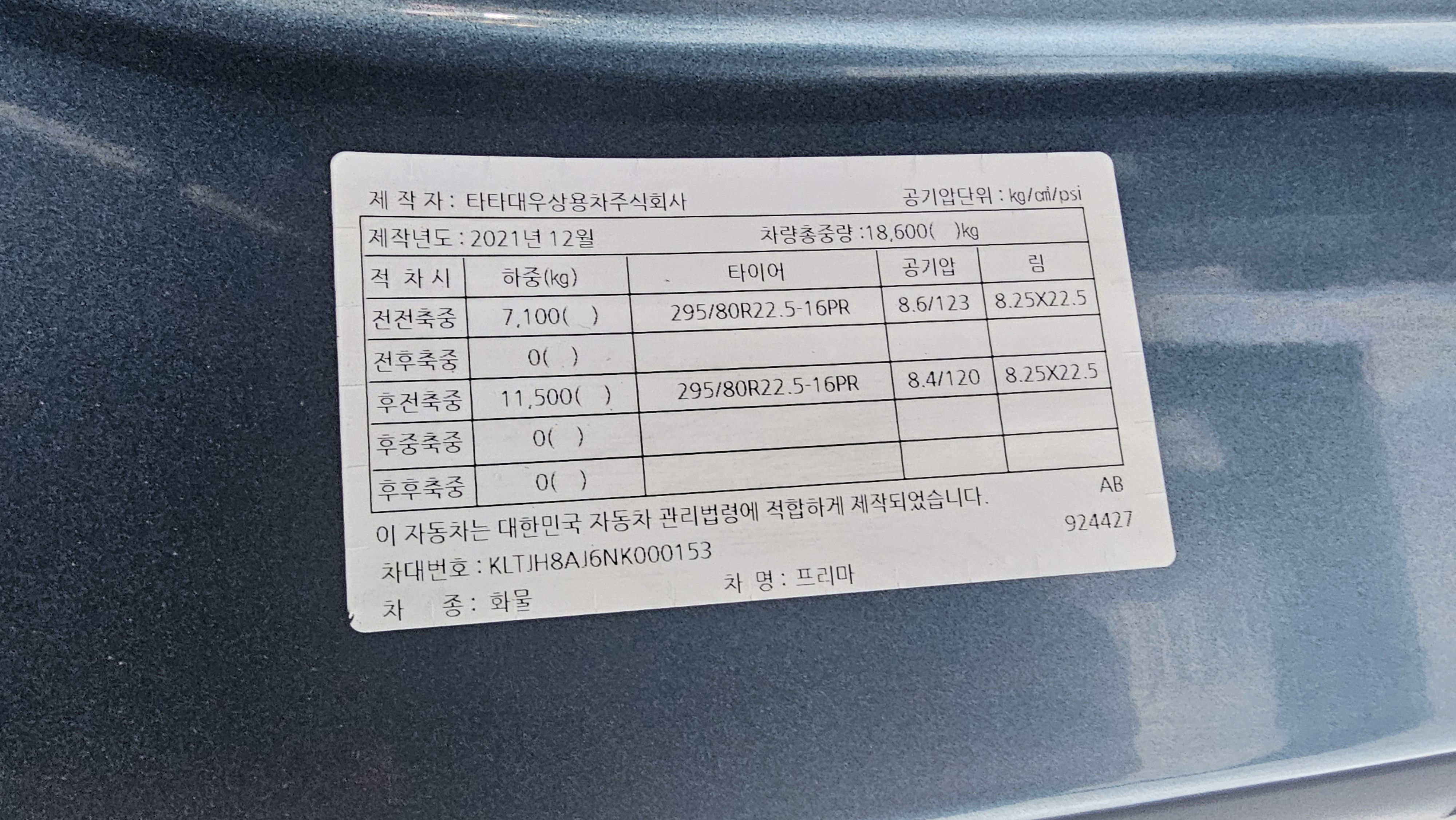 -차 명 : 프리마 8.5톤 후축 윙바디